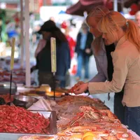 Priserne på Fisketorget er ikke lave, men man kan købe alle spiselige gaver fra det nordlige Atlanterhav her: dolkhalekrabber, grønlandsrejer, rødfisk, havtaske, pighaj, torsk, skræmmende (både hvad angår deres udseende og deres pris) havkat, enorme helleflyndere, vågehval, krebsdyr, bløddyr og naturligvis tørret fisk – klipfisk og tørfisk.
