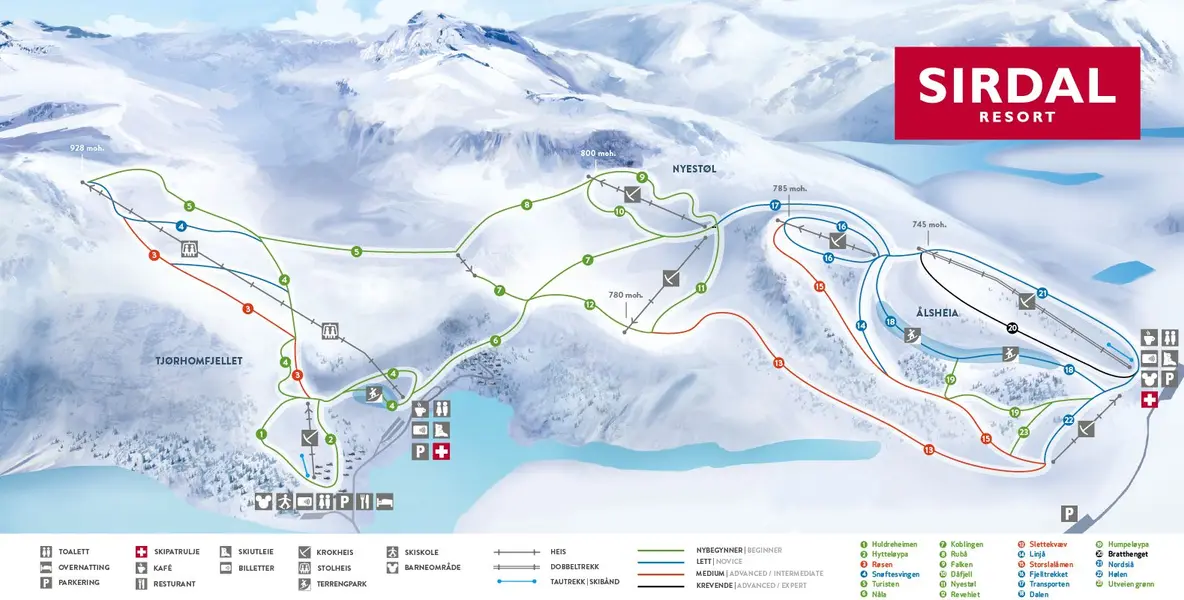 Se alle fakta om Sirdal Skicenters piste, løjper mv.