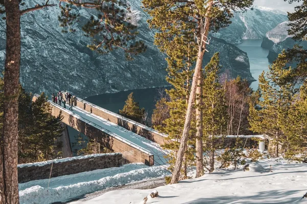 I kan ikke besøge Flåm om vinteren uden en tur til Stegastein. Når I står på udsigtspunktet, 650 meter over Aurland, har I panoramaudsigt til Aurlandsfjorden og det betagende verdensarvslandskab. Udsigtspunktet rager 30 meter ud fra bjergsiden og giver dig en følelse af at hænge frit i luften.