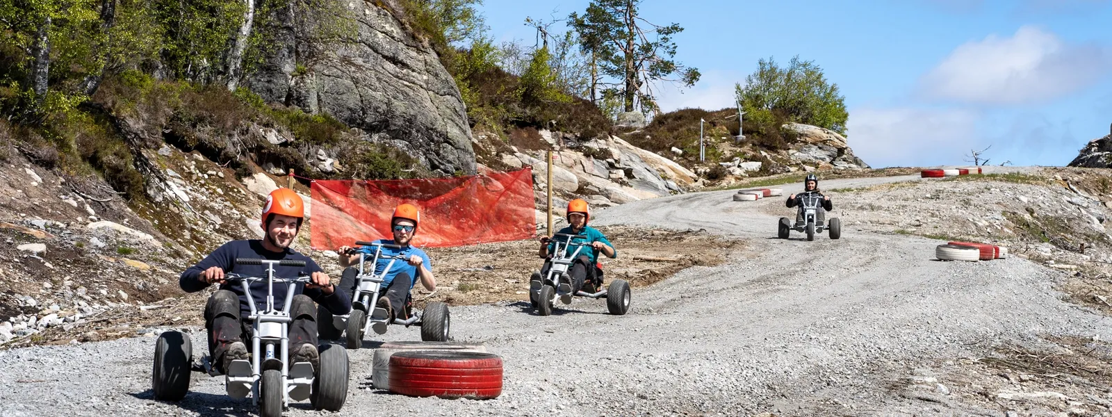 En af de mest populære sommer- og efterårsaktiviteter i Sirdal er Mountain Cart. Her kan store og små få farve i kinderne og sug i maven, når I sætter jer bag rattet i en af stedets "forvoksede" trehjulede cykler og suser ned ad slalombakken.