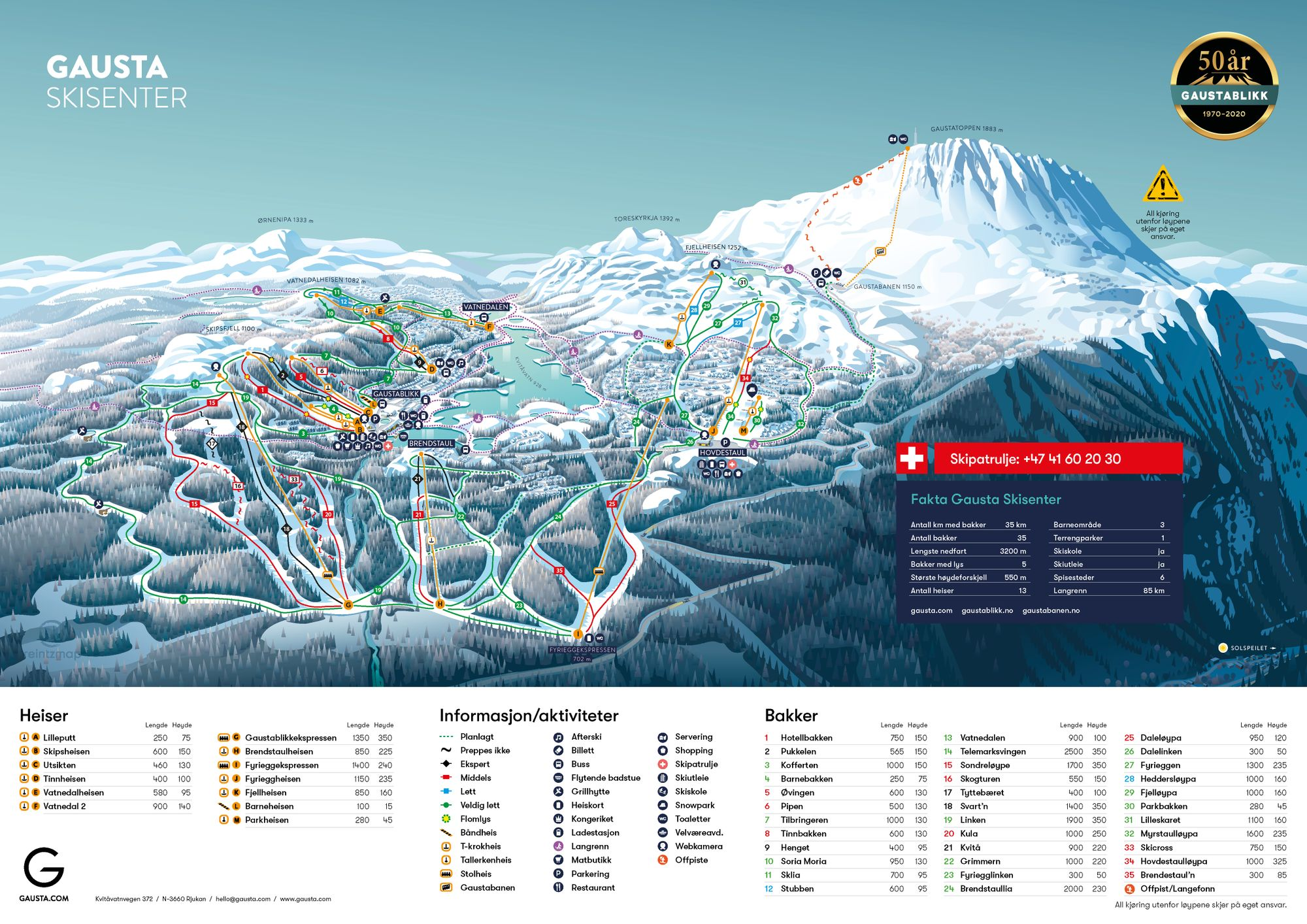 Se kort og detaljer om Gausta Skicenters hele 35 piste.
