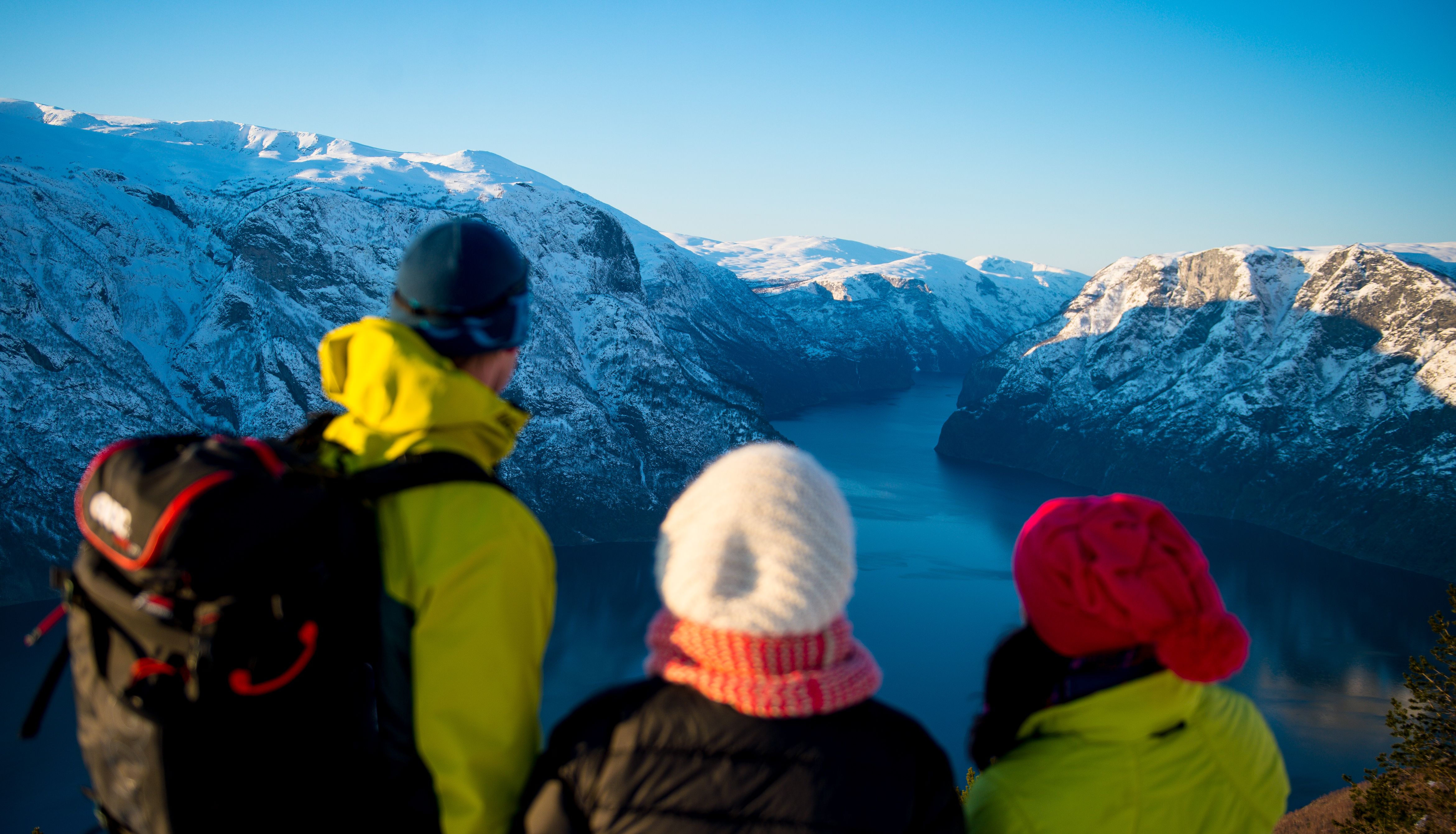 Herefter er I klar til at starte turen i det vinterdækkede landskab. Turen byder på det ene spektakulære syn efter det andet, når I ser fjorden, Flåm og bygden Undredal og ikke mindst de omkringliggende snedækkede fjelde i fugleperspektiv. Der bliver serveret varme drikke undervejs, og hvis føret er til det, kan de mindste få en kælketur med numsebræt.