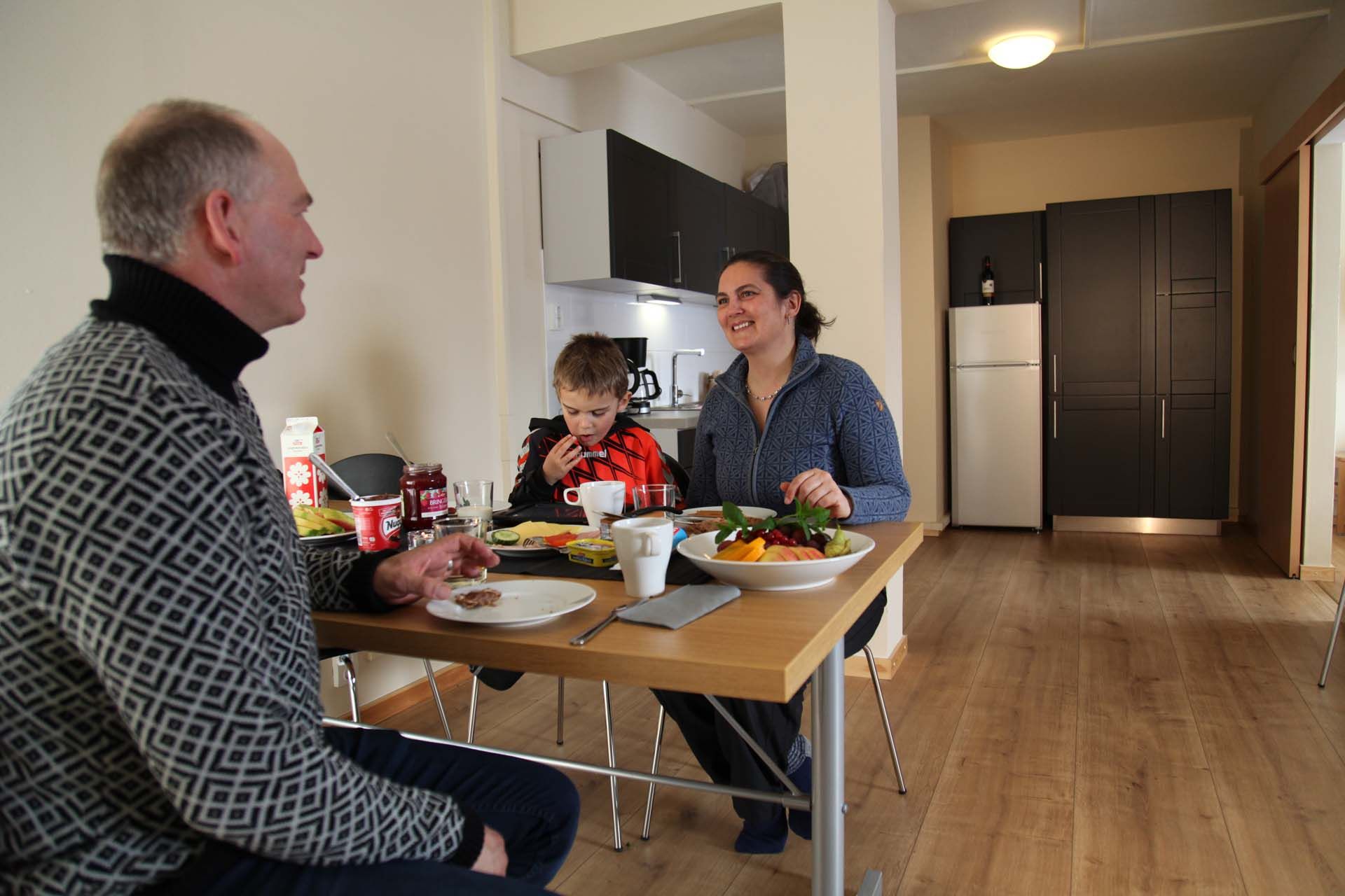 Alle lejligheder har badeværelse med bruser og toilet, fuldt udstyret køkken med opvaskemaskine og stue med TV, så her er rig lejlighed til at holde jeres helt eget afterski efter en lang dag på pisterne!