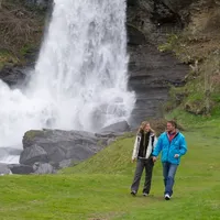 Blot 10 minutters kørsel fra Øystese finder I en af Norges mest populære seværdigheder: Steindalsfossen.