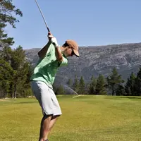 I finder Ørnefjell Golfbane blot 10 min. kørsel fra Hovden centrum. Banen ligger smukt placeret mellem vand, bakker og fjeld i en højde af 725 meter over havet, så I er garanteret flotte omgivelser til jeres golfrunde.