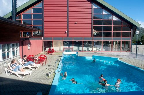 Det er endda muligt at tage en dukkert i udendørsbassinet året rundt – Her får I en helt enestående oplevelse, når I ser ud over fjeldtoppene, mens I svømmer i det opvarmede vand.