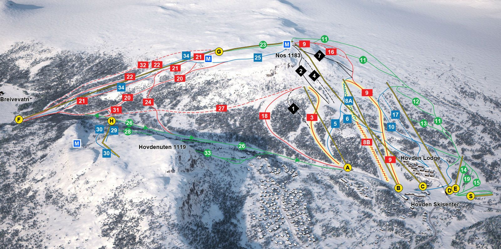 Se alle fakta om Hovden Alpincenters piste, løjper mv.