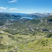 Her kan I nyde den smukke udsigt fra fjeldtoppen, der med en højde på 1183 meter over havet giver et flot udsyn over højfjeldet - på klare dage endda helt til Hardangervidda.