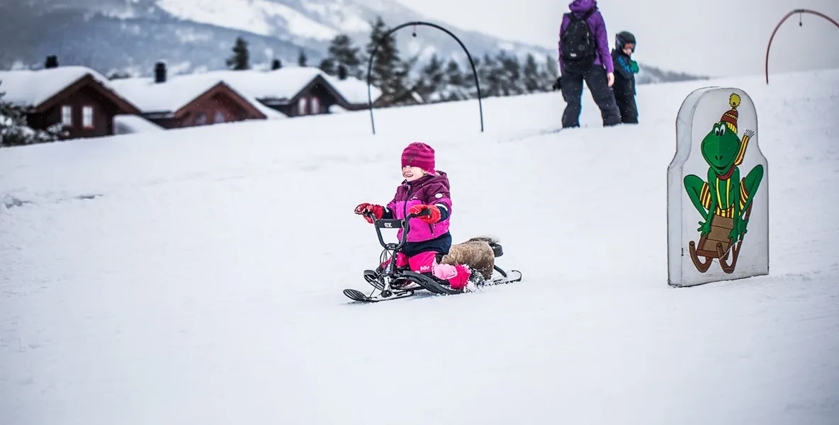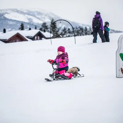 Skicentret i Vrådal har et stort børneområde, hvor de små næsten altid kan hygge sig med kælken i løbet af dagen. Men den største magi opstår, når mørket falder på: Så kan både store og små nemlig finde kælken eller bobslæden frem og sætte kurs mod bakken "Lille-Petter", der er oplyst til kl. 21. Skiliften kører naturligvis, så her kan I kælke igen og igen.