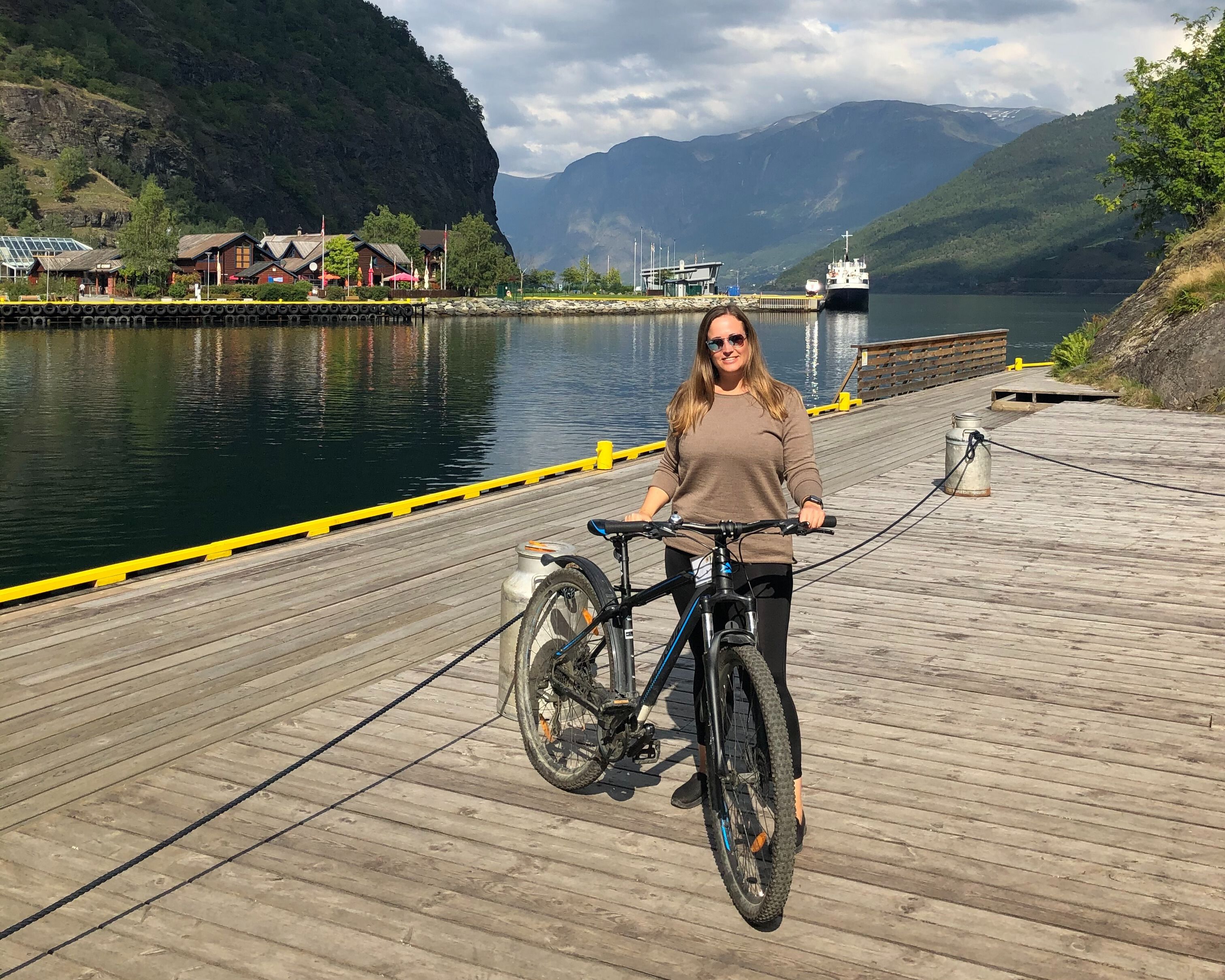 Fra fjeldbasen i Voss udforskede de nærliggende seværdigheder – herunder Flåm, hvor de tog Flåmsbanen op og prøvede zipline og cykel ned igen.