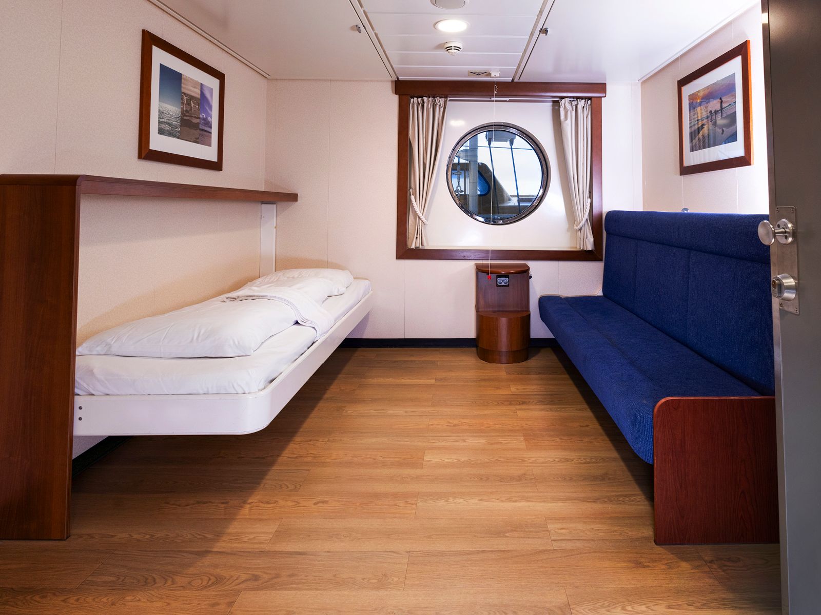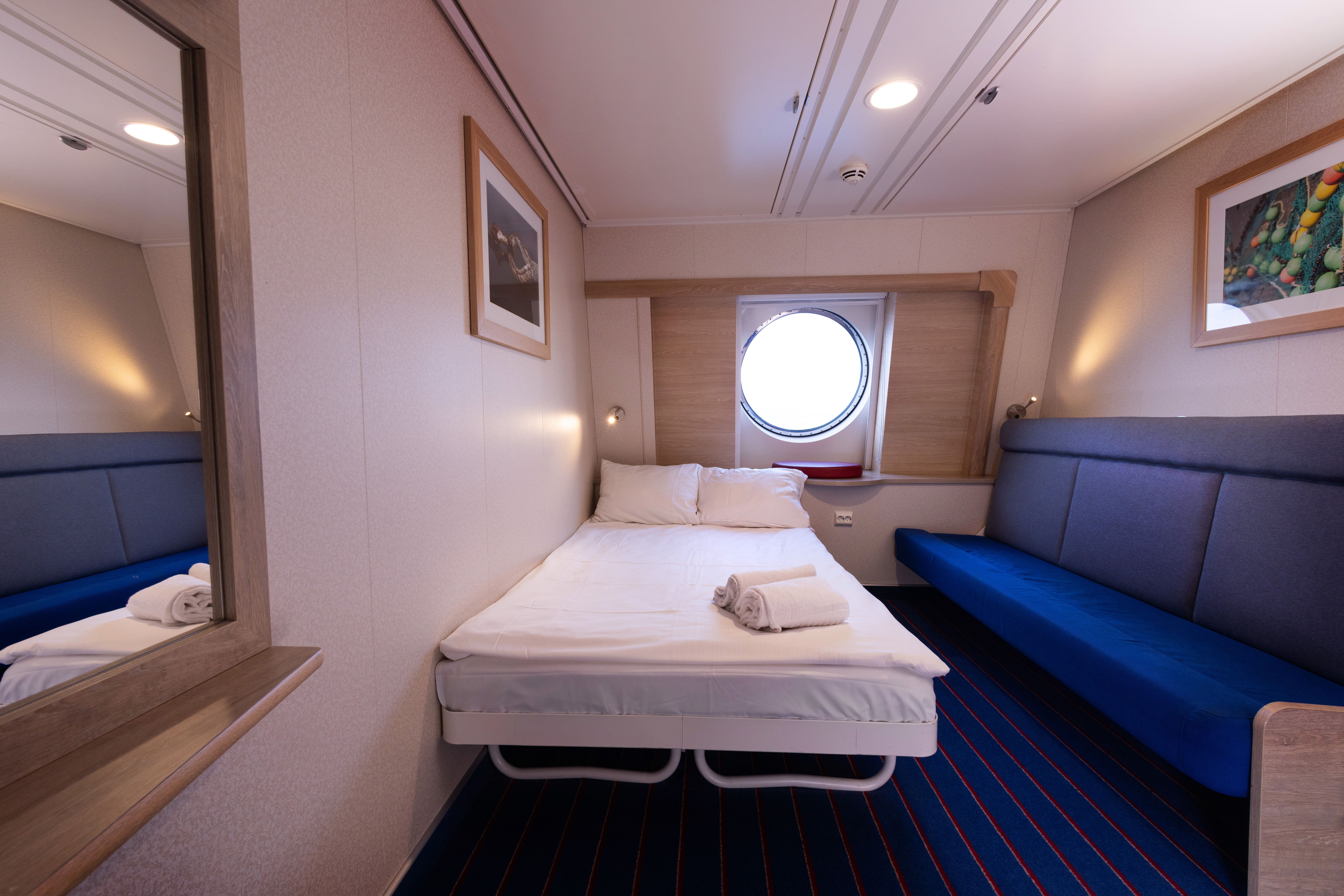 Komfortable kahytter til 1-2 personer. Disse kahytter er forsynet med seng, sovesofa, samt eget badeværelse med brusebad og toilet. Størrelsen på kahytterne er 8,5 m², og de ligger på dæk 8. Hund er tilladt på disse kahytterne. NB! Disse kahytter skal bestilles pr. telefon.