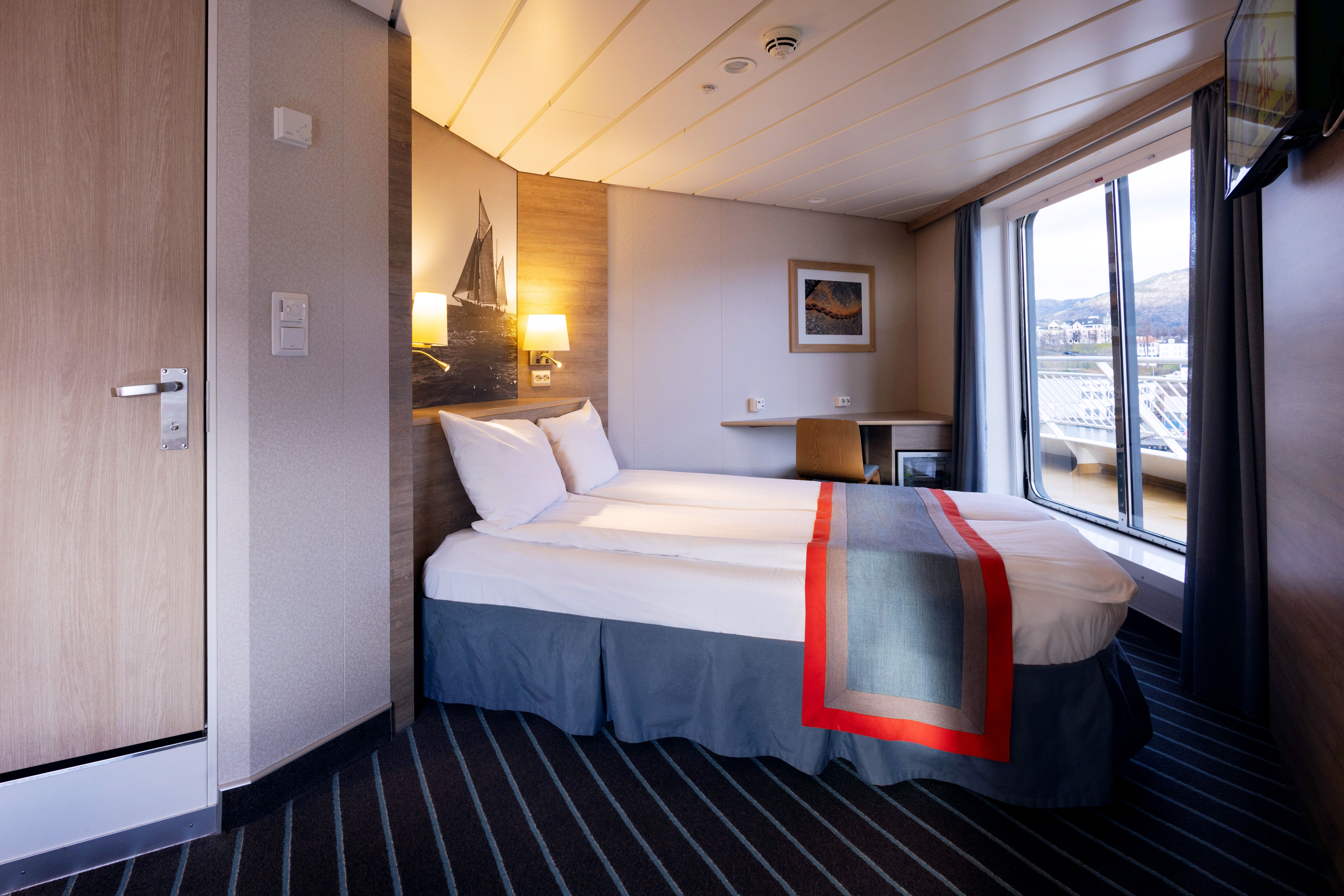 Komfortable kahytter med havudsigt til 1-2 personer. Disse kahytter er forsynet med seng, sovesofa, TV, samt eget badeværelse med brusebad og toilet. Størrelsen på kahytterne er 8,5 m², og de ligger på dæk 8.