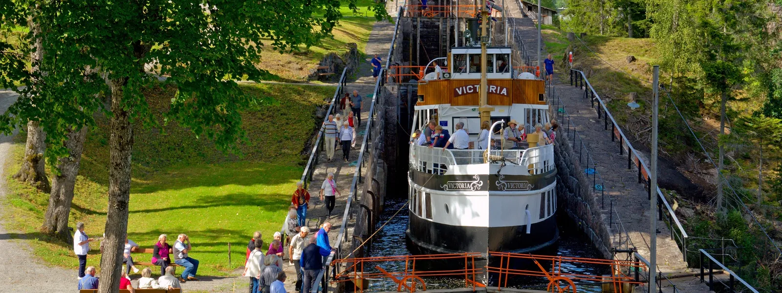 Wenn Ihr straffes Urlaubsprogramm keinen ganzen Tag am Kanal zulässt, ist eine der 18 Schleusenanlagen einen Ausflug wert. Die größte Schleusenanlage mit insgesamt fünf Hebekammern befindet sich in Vrangfoss. Schlendern Sie entlang der faszinierenden Schleuse, bevor Sie Ihr Lunchpaket unter dem grünen Dach mit Blick auf das Schleusengewässer verspeisen, das Kanalboote, Segelboote, Kanus und Kajaks über einen Höhenunterschied von insgesamt 23 Metern befördert – und zwar genau so, wie schon zu Zeiten der Eröffnung des Kanals im Jahr 1892.