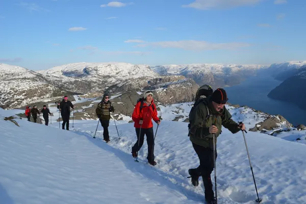 Die einzigartige, 604 Meter hohe und fast senkrechte Klippenformation mit der flachen Spitze und den scharfen Kanten ist nicht ohne Grund einer der berühmtesten Reiseziele Norwegens – und die Tour ist womöglich noch imposanter, wenn die Gegend in Schnee gekleidet ist. Sie können eine geführte Tour mit Transport buchen. So sind alle praktischen Dinge um die Tour herum schon in Voraus geklärt und Sie müssen lediglich ihre Wanderausrüstung anlegen und das Erlebnis genießen.
