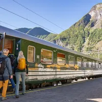 Begeben Sie sich auf eine Fahrt mit der schönsten Eisenbahn der Welt und lassen Sie sich durch einige der spektakulärsten Landschaften Norwegens befördern, während Sie sich in einem komfortablen Zugwa