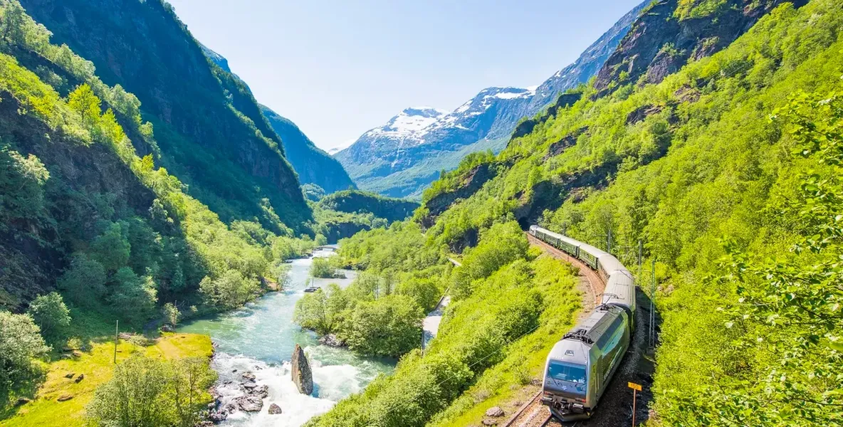 Diese Eisenbahn ist eine der steilsten Standardschmalspurbahnen der Welt und eine von Norwegens beliebtesten Attraktionen, weil sie einen sagenhaften Panoramablick auf einige der wildesten und bezauberndsten Fjordlandschaften Norwegens bietet.