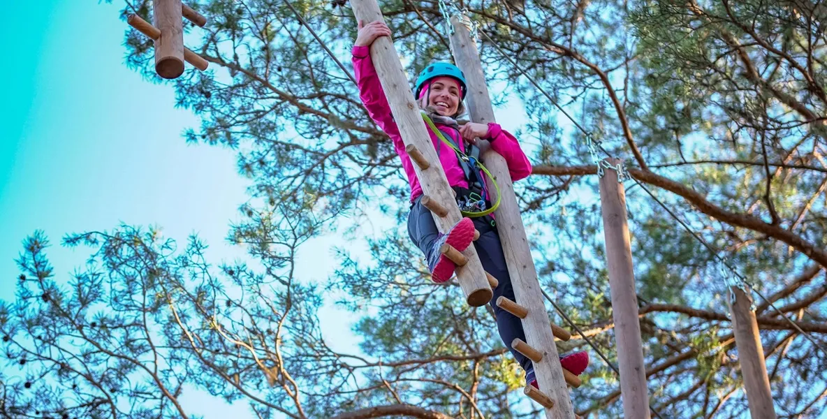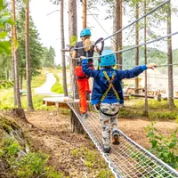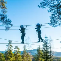 Im Kletterpark Høyt & Lavt können sich kleine und große „Kletteraffen“ in fünf Kletterbereichen mit fünfundsechzig verschiedenen Elementen, elf Seilbahnen und einer Kletterwand austoben.