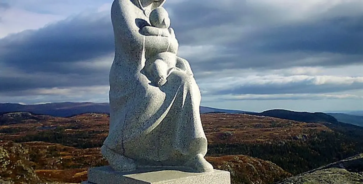 Mitten im Nirgendwo auf einem Berg in 1.020 Metern Höhe ist ein eher unkonventioneller Ort für ein Kunstwerk – und doch steht hier die Granitstatue der Madonna in Eggedal, etwa 40 Minuten westlich von Norefjell.