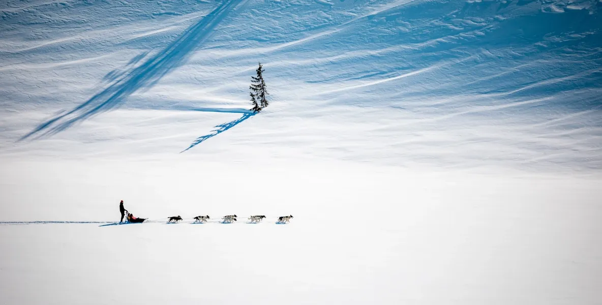 Erkunden Sie die schneebedeckten Berge mit Ihrem eigenen Hundeschlittengespann.