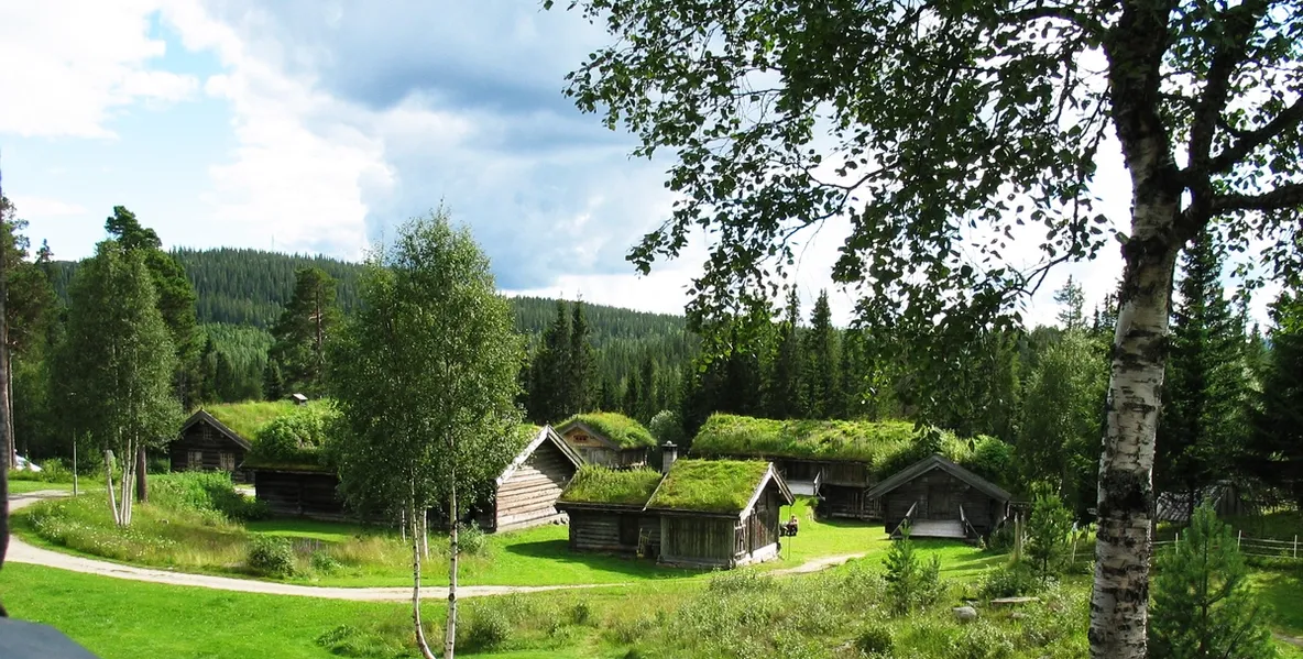 Machen Sie einen angenehmen Ausflug zurück in der Zeit und besuchen Sie Telemarkstunet – mehrere nachgeahmte traditionelle Rauland-Häuser.