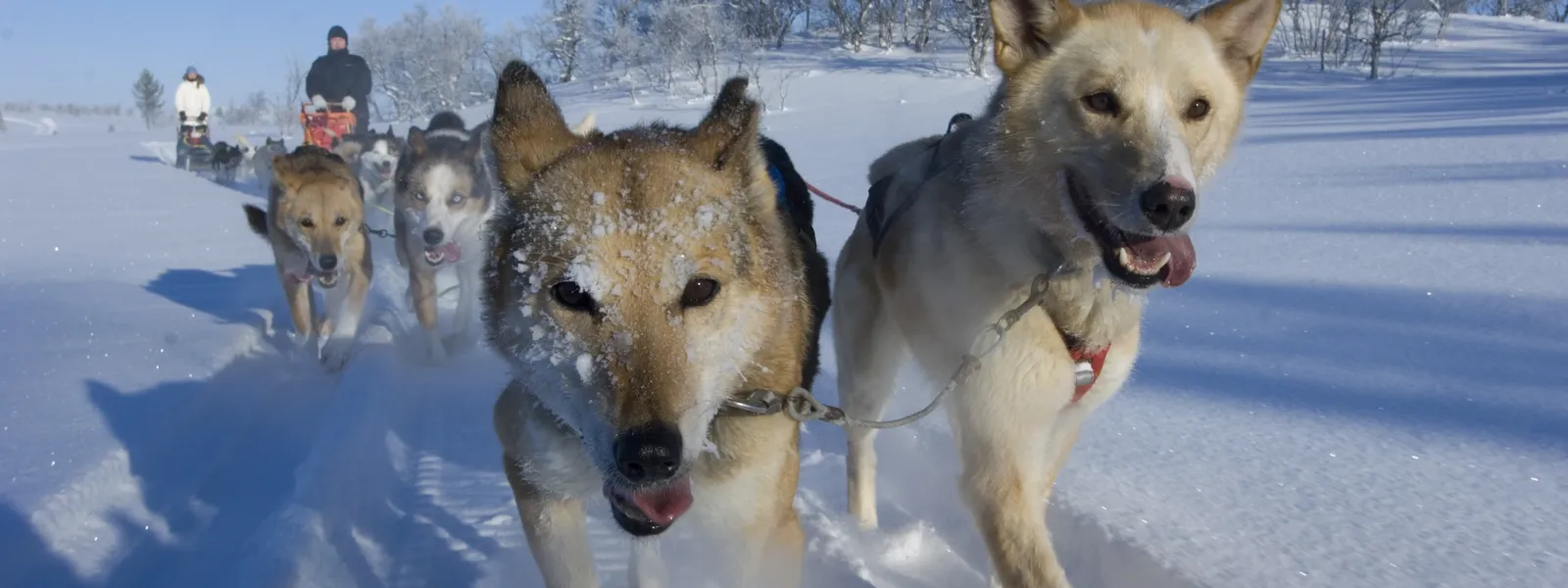 Sie können die Huskyfarm besuchen, werden herumgeführt und können die Hunde treffen - aber ein noch größeres Erlebnis erwartet Sie, wenn Sie eine Hundeschlittentour buchen, wo Sie nach einer kurzen Einführung sogar Ihr eigenes Hundegespann durch die schöne, verschneite Landschaft lenken dürfen.