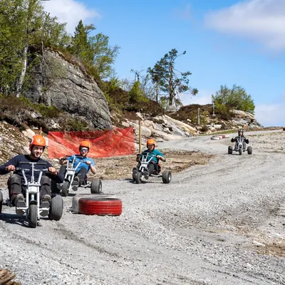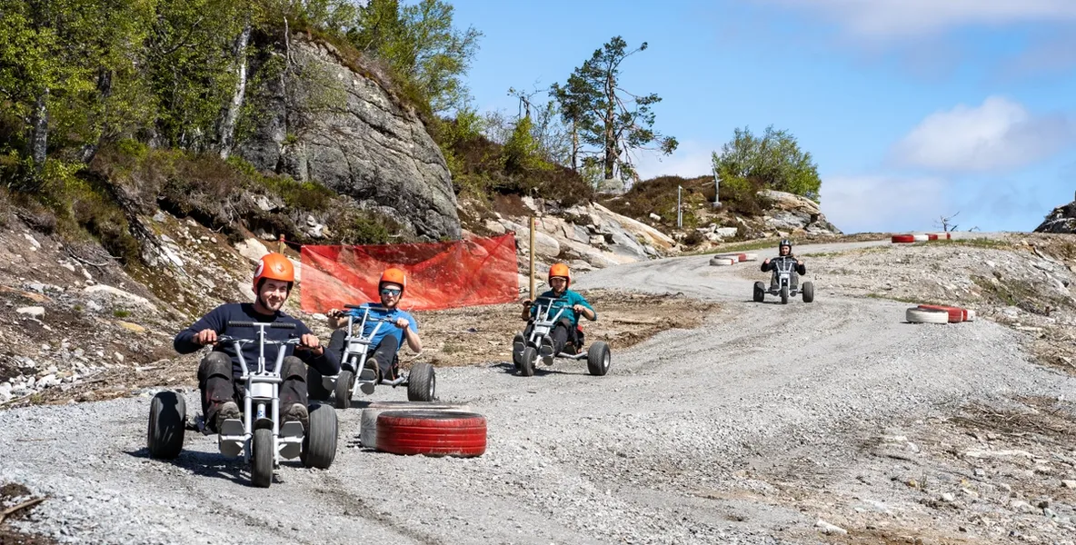 Eine der beliebtesten Sommer- und Herbstaktivitäten in Sirdal ist Mountaincart. Hier können sich Jung und Alt auf eines der Riesendreiräder schwingen und den Slalomhügel hinuntersausen – ein Fahrerlebnis, dass für jede Menge Nervenkitzel sorgt.