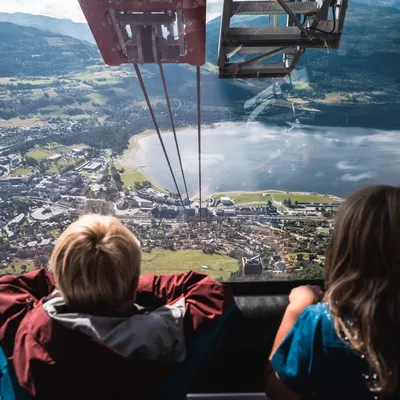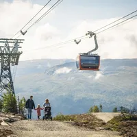 Die Seilbahn ist die erste und modernste Seilbahn Nordeuropas und bringt Sie in etwa neun Minuten auf den Gipfel des Hangur, auf 820 Meter über dem Meeresspiegel. von wo aus Sie spektakuläre Blicke auf die Landschaft genießen.