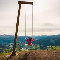 Oben auf dem Gipfel können Sie entweder eine der Wanderungen der Umgebung unternehmen oder einfach das schöne Gelände in der Nähe der Gondelstation erkunden. Es gibt sowohl angenehme Wanderwege für die Jüngsten als auch längere und anspruchsvollere Strecken für erfahrene Wanderer. Es gibt sogar einen speziellen „Panorama-Rundgang“ mit Fotorahmen und mehreren Schaukeln, auf denen Sie ein ganz besonderes Urlaubsfoto für zu Hause machen können.