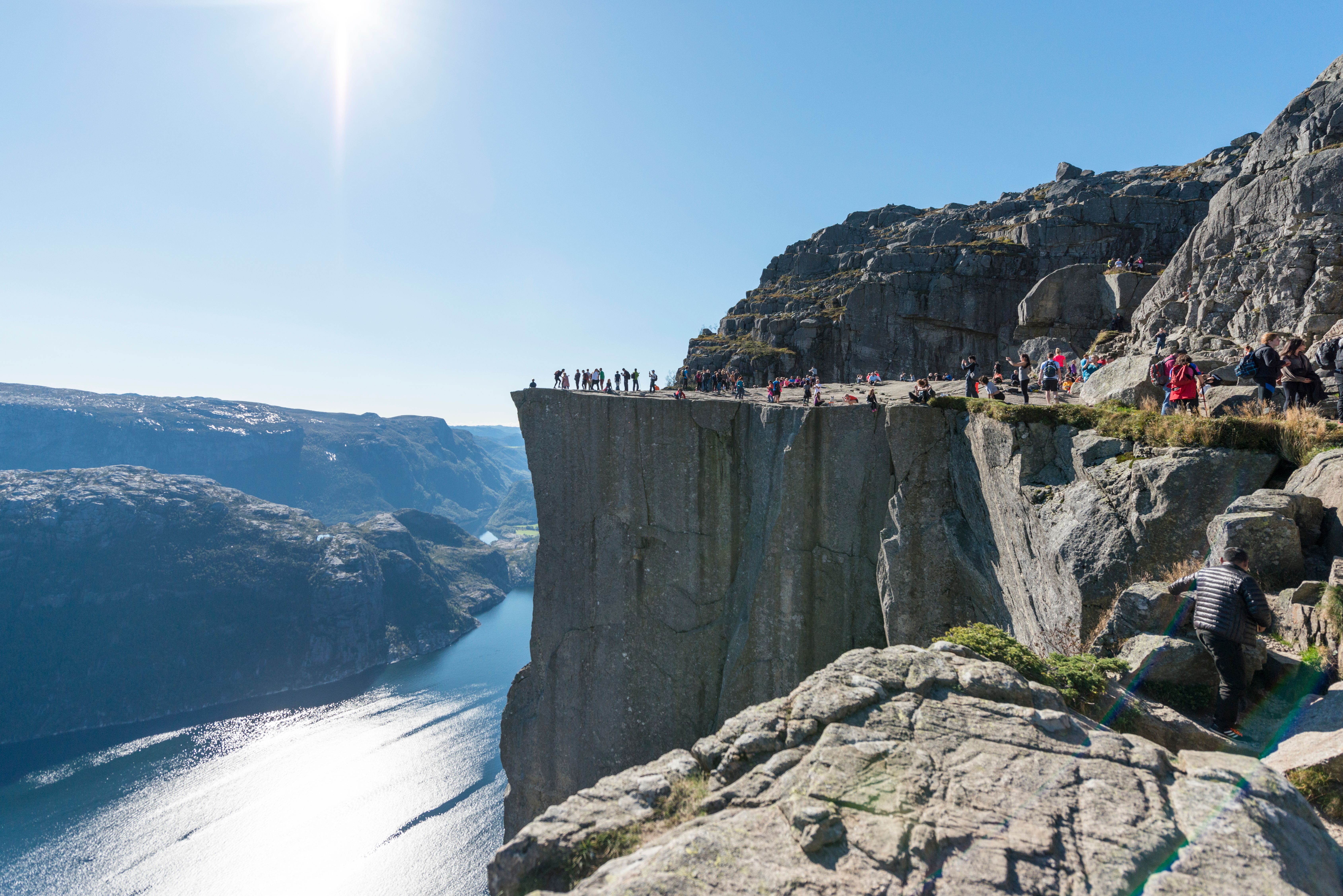 The 604-metres-tall and almost vertical cliff formation with its ultra-flat surface and sharp edges towers over the Lysefjord east of Stavanger in Western Norway, and once you have experienced the incredible hike, you will know why it has been named one of the world’s most unique, beautiful places by Lonely Planet.