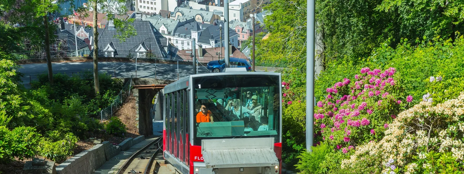 For almost a hundred years, the Fløibanen has carried people from the centre of Bergen to the top of Fløyen, one of the seven mountains surrounding the city. Fløyen is not the highest of these seven mountains, but it has the best view of the city, the fjords and the islands in the distance.