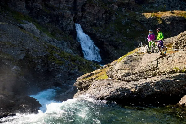 The most popular cycle route in Norway. This 210 kilometre route is a must for cycling enthusiasts. The route takes you from Geilo over Hardangervidda and down to either Voss or Flåm. In spring there may still be snow in the area, so check this before you set out. The easiest place to start is at Haugastøl. Here you’ll find a train station, a large car park and bicycle hire. You can also start in Finse.