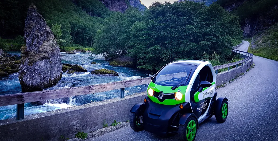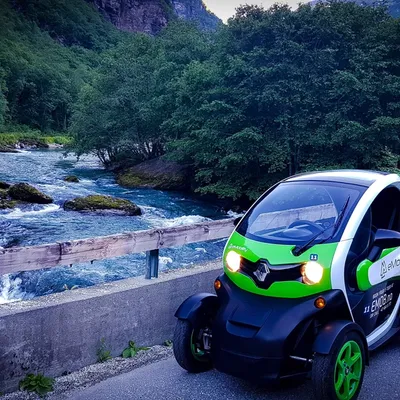 Want an unconventional sightseeing experience close to nature? Then you can rent one of Flåm's electric minivans, the Renault Twizy, which seats two people.