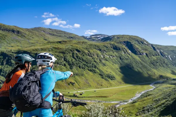 Another fantastic hike starts just before you start on the hairpin turns towards the Vikafjell mountain plateau, approx. 10 minutes’ drive or 6 km by bike from Myrkdalen Hotel. From the mountain farms in Holo, you follow the marked trail up Grungagjelet towards Vetla Grungavatnet lake until you reach the small mountain farm of Vetle Grungen. Don’t forget to pack a lunch and your swimming costume!Families with children aged 12 and over can join in the Bike & Hike from Myrkdalen.