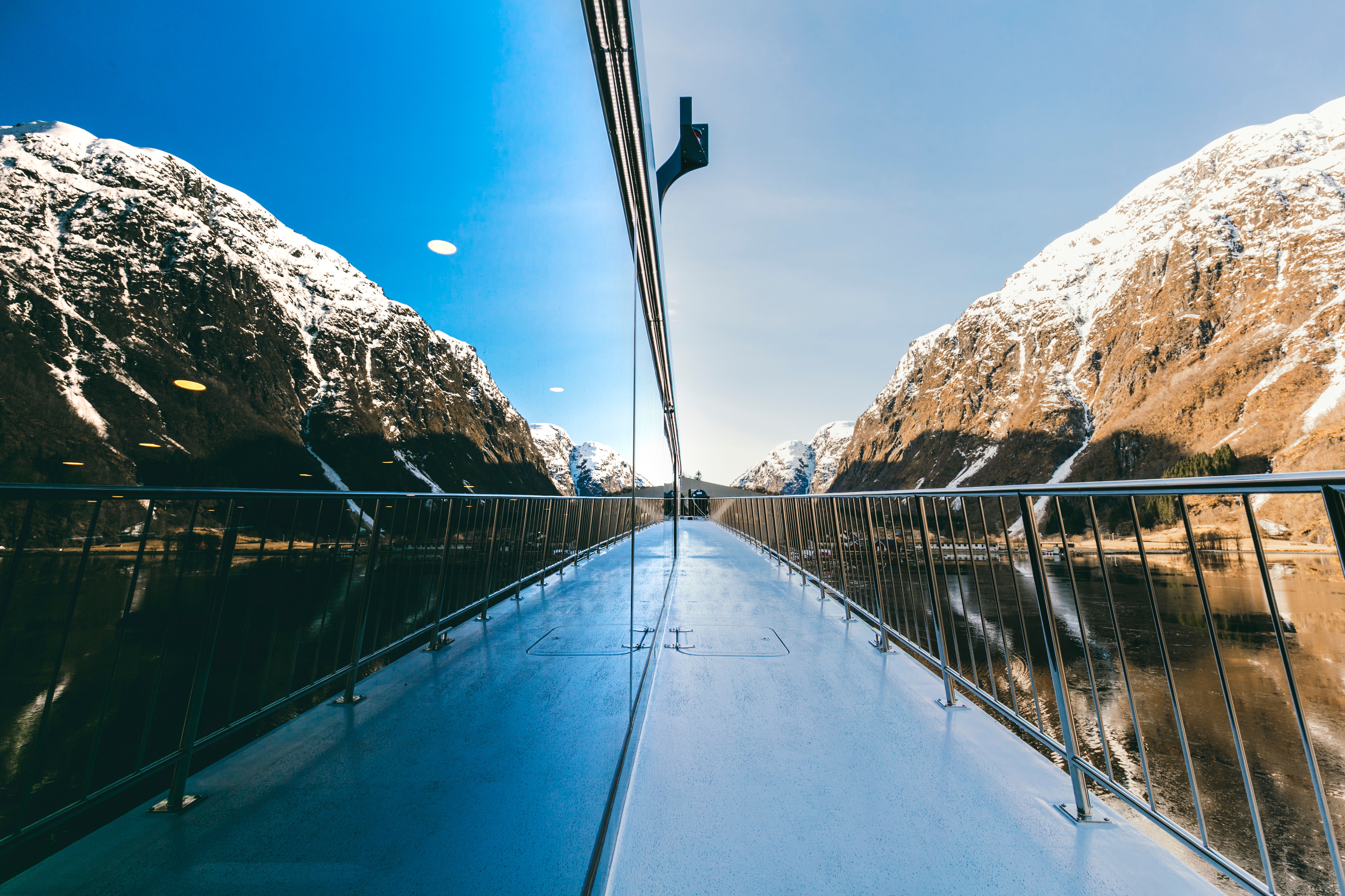 Hop aboard a fjord cruise and have the experience of a lifetime as you sail through Aurdalsfjorden and the unique, narrow Nærøyfjord surrounded by snow–capped mountains up to 1,800 metres high.