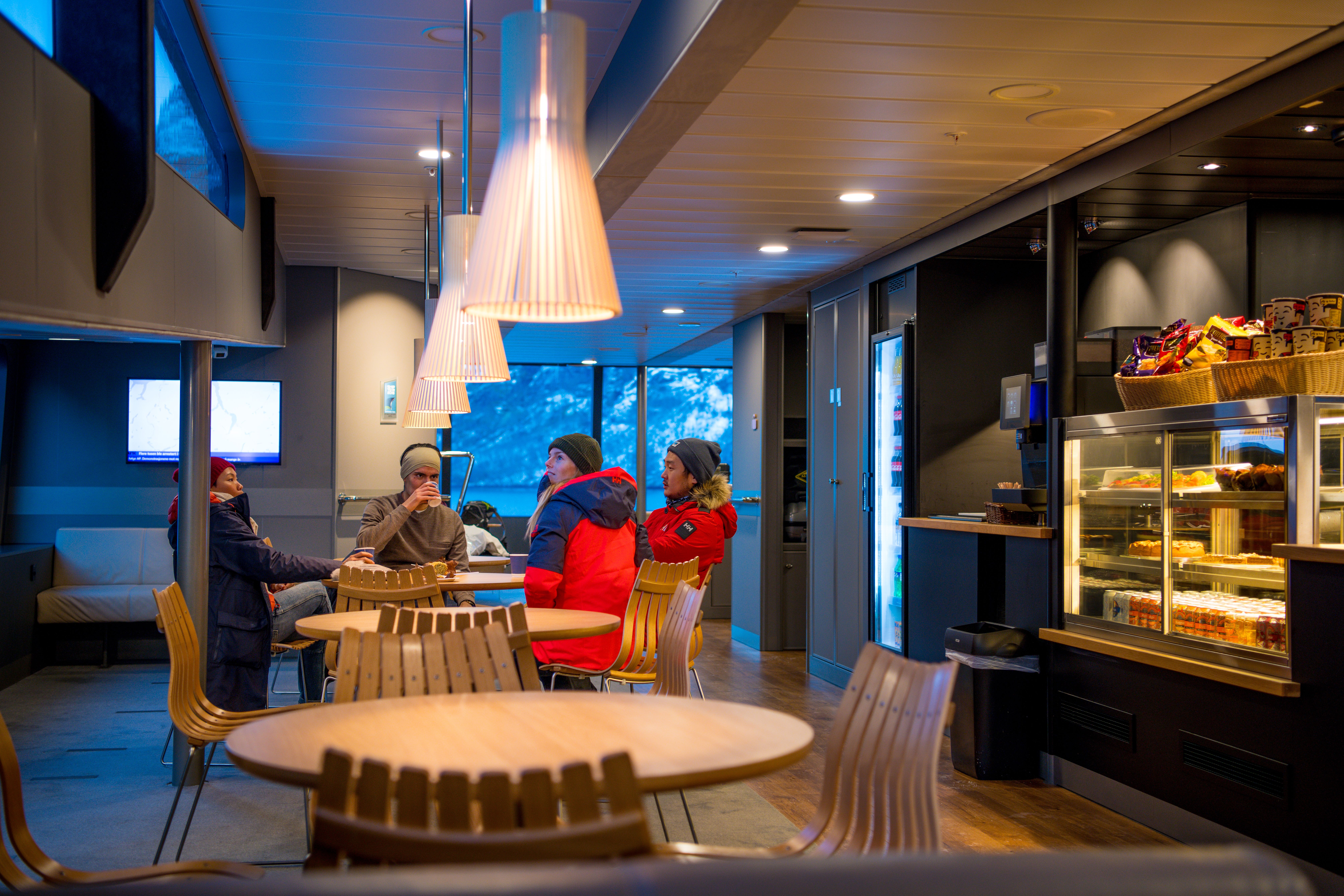 On the trip, you'll sail on a modern electric ferry designed with inspiration from the surrounding countryside and the area's needle–twisting roads – and, of course, fitted with large windows so you can enjoy the view from anywhere on the boat, whether you want to brave the cold on deck and walkways or stay inside in the warmth.
