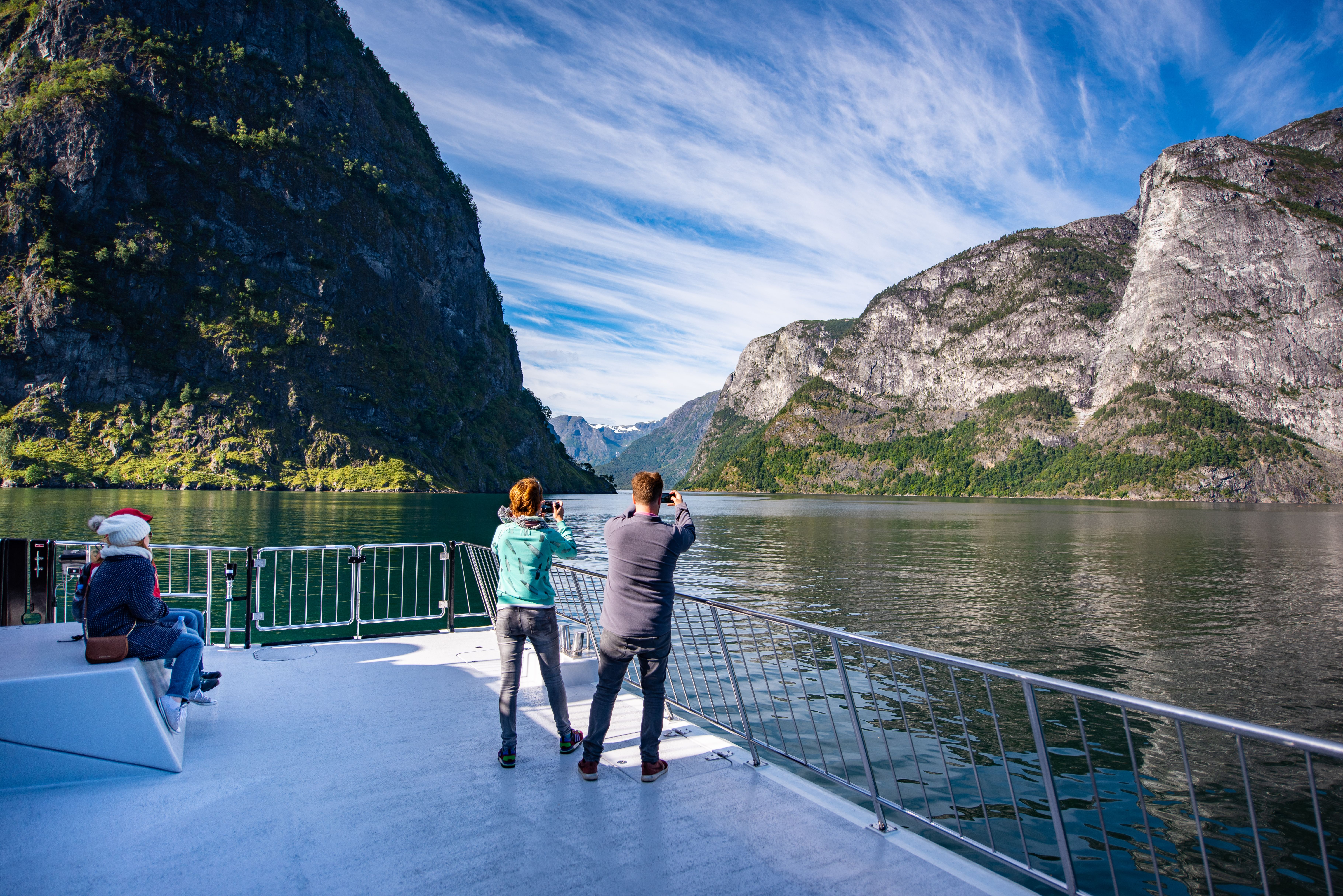 Board the electric ferry departing from Flåm – then sit back and look forward to a fantastic nature experience in Aurlandsfjorden and Nærøyfjorden.