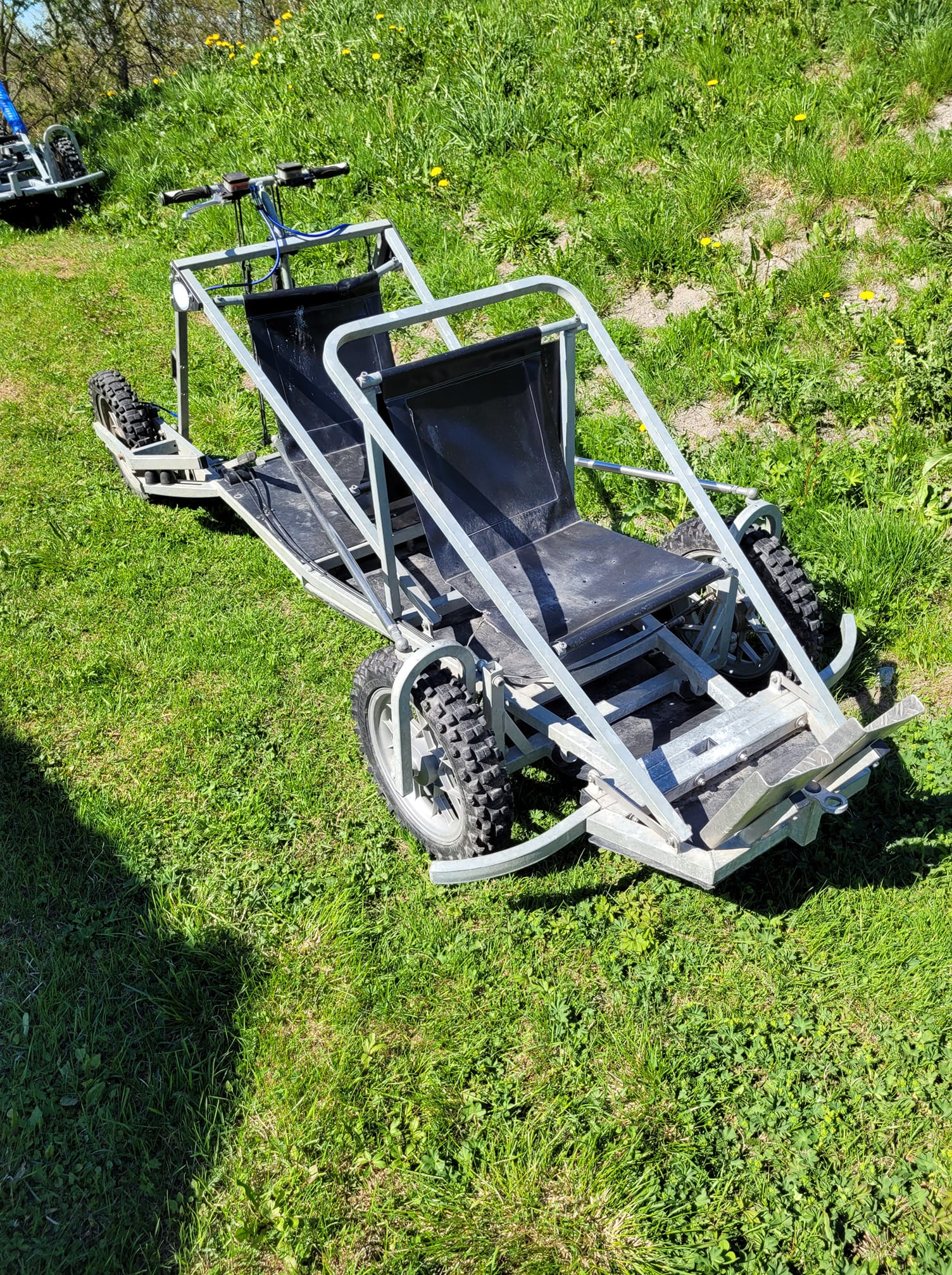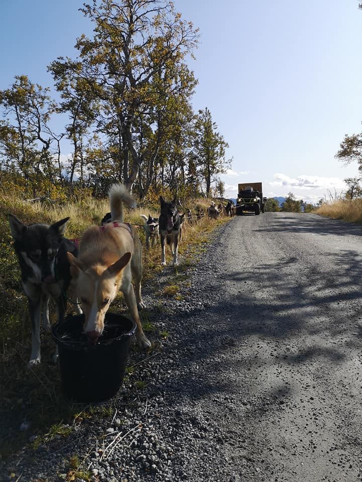 If you think sled dogs only work in winter, you're wrong! The eager and hard–working dogs love their work, and when the snow melts, they simply pull carts with wheels instead of sleds with sledges.