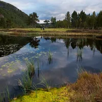 Vrådal's nine-hole golf course is located on the small island of Fossøy at the northern end of Lake Nisser, so when you walk the course, you're surrounded by forest, mountain and lake on all sides. It's also not uncommon to encounter local wildlife on the trail – including seabirds, deer, elk, beavers and golden eagles.