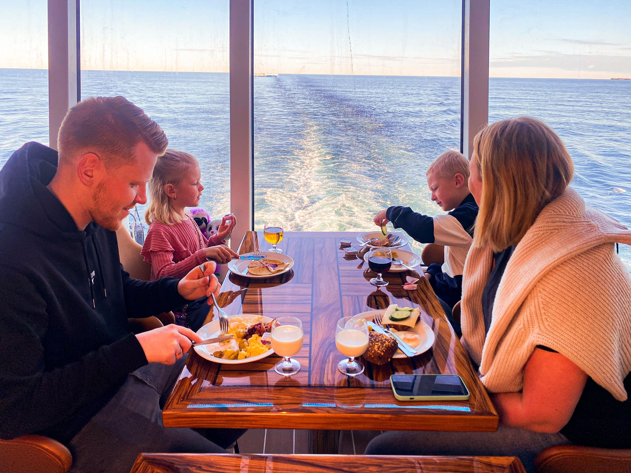 Men aller først skal familien kose seg. De skal se på alt det spennende som finnes, ta inn alle inntrykk, gå ut på dekk og senere spise en deilig middag sammen.
