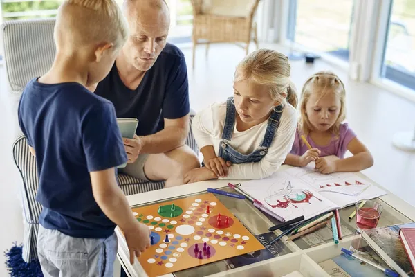 Familiehygge i et sommerhus eller på et feriesenter