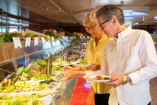 Fjord Lines buffetrestaurant, Commander Buffet, tilbyr deilige måltider laget med gode råvarer. Her kan du nyte gode matopplevelser og forsyne deg av så mye mat og drikke du vil mens du seiler langs kysten.
