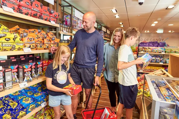 I taxfree-butikken kan du gjøre kupp på parfyme, kosmetikk og andre godsaker før campingeventyret begynner på alvor.