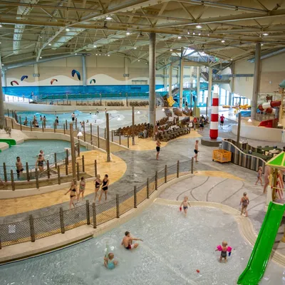 Uansett - besøker man LALANDIA Rødby, kommer man ikke utenom selve rosinen i pølsa: AQUADOME, et enormt vannland i deilige tropiske omgivelser der vannet er 28 grader varmt og luften holder behagelige 30 grader. Sus nedover de fantastiske vannskliene, kjenn på magesuget i Tornado eller forsøk det på årets nyhet: WaveSurf! Her surfer du rett og slett på en evig perfekt bølge. I Aquadome kan du også bare nyte utsikten over Østersjøen fra store panoramavinduer og slappe av under palmene med en snack og noe å drikke fra Surf Club Food & Drinks. I AQUADOME er det også herlig oase for barn fra 0 til 5 år, Kids Area.