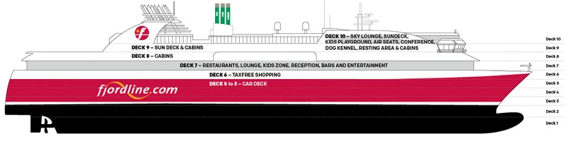 Gratis bagasjerom – På dekk 7, rett ved resepsjonen, finner du et bagasjerom som kan benyttes kostnadsfritt. Rommet er åpent i 10 minutter etter avgang og 10 minutter før ankomst. Oppbevaring skjer på eget ansvar.