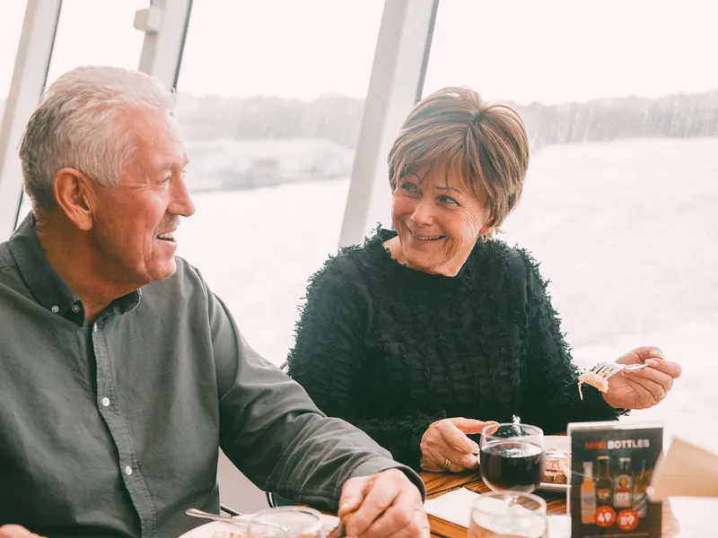 Lugarene er lyse og komfortable med eget bad og toalett – et godt utgangspunkt for en avslappende natt til sjøs. Middagsbuffet i Commander Buffet er inkludert i pakken, og her får dere servert et rikt utvalg av varme og kalde retter, salater og desserter.
