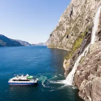 Et fjordcruise på Lysefjorden er en oplevelse for livet. Turen bringer jer bl.a. forbi Preikestolen og Kjerag, smukke vandfald og dramatiske klipper.