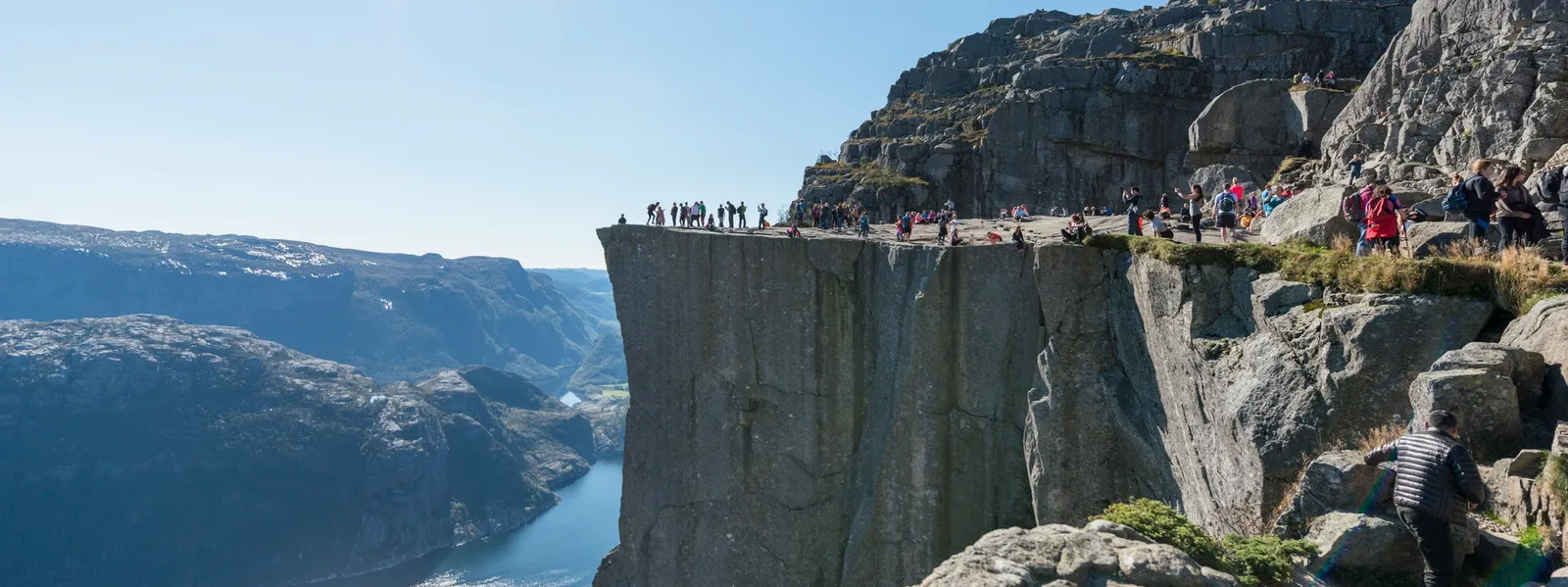 Die 604 Meter hohe und fast senkrechte Felsformation mit ihrer ultraflachen Oberfläche und den scharfen Kanten ragt über den Lysefjord östlich von Stavanger in Westnorwegen. Wenn du die Wanderung zu diesem unglaublichen Naturphänomen einmal selbst erlebt hast, wirst du wissen, weshalb es von Lonely Planet zu einem der einzigartigsten und schönsten Orte der Welt ernannt wurde.