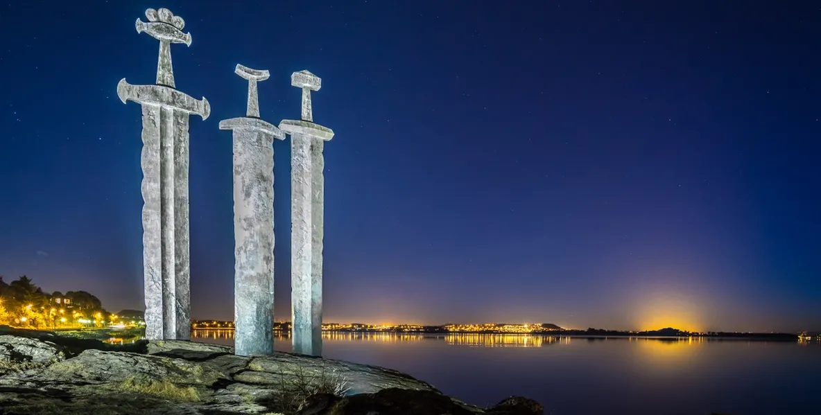 Feel the wings of history when you visit the artwork Sverd i Fjell – three huge Viking swords that tower over Hafrsfjord near Stavanger. The artwork was created to commemorate the fact that Norway was united as a single kingdom in 872.