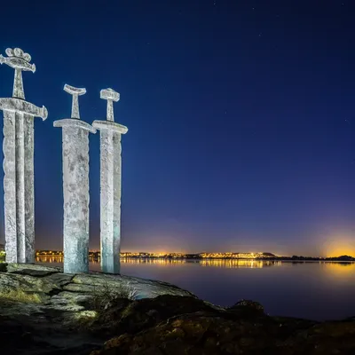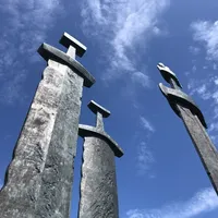 As its name suggests, Sverd in Fjell is made up of three ten-metre–high vertical bronze swords that look as if they've been stabbed into the rock by a giant. The swords are said to symbolise peace, unity and freedom and stand close to the shores of the idyllic Hafrsfjord near Stavanger.