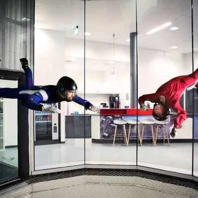 After a basic instruction, your personal instructor leads you into the wind tunnel and then the flight begins. The wind starts and you spread your "wings" and float freely in the air for two times a minute and a half – a fascinating experience for all ages!